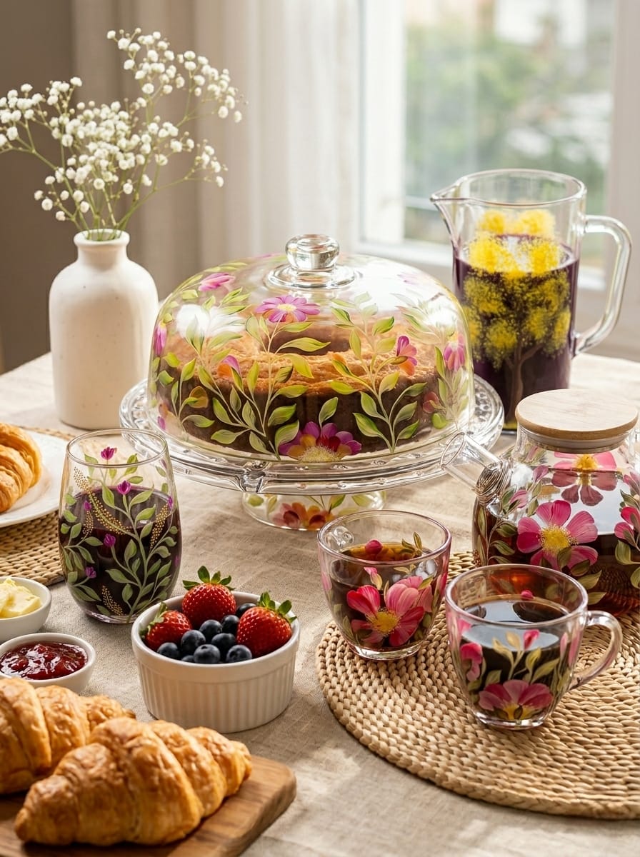 É nesse cenário que ganham vida as louças de Vidro, Cristal e Porcelana exclusivas, com Pinturas Feitas à Mão, onde cada detalhe reflete a Beleza e a Paixão do trabalho Artístico.